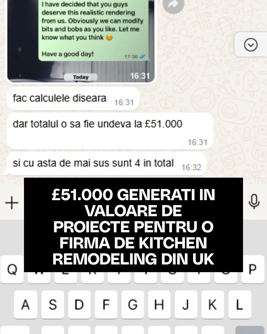 3 JOB-URI ( £41.000 total ) + 1 JOB ( £ 17.400 ) DUPA 3 SAPTAMANI DE COLABORARE PENTRU O FIRMA DE RENOVARI BUCATARII DIN UK